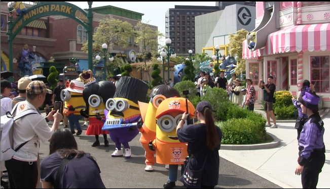 一方で近くにあるミニオンパークがまだ空いていたため、途中でミニオンパークに入りました。シューティングゲームで、ディズニーのようでしたが楽しめました。終わって外にでるとミニオンのショーが始まっていました。まだ始まったばかりで客も少なくゆっくりと見ることができました。
